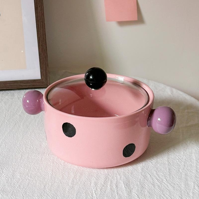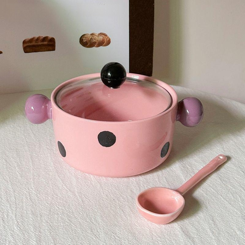 ชามบะหมี่ลายจุดตัดสี - สีชมพู