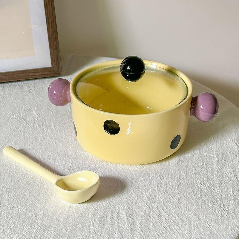 ชามบะหมี่ลายจุดตัดสี - สีเหลือง